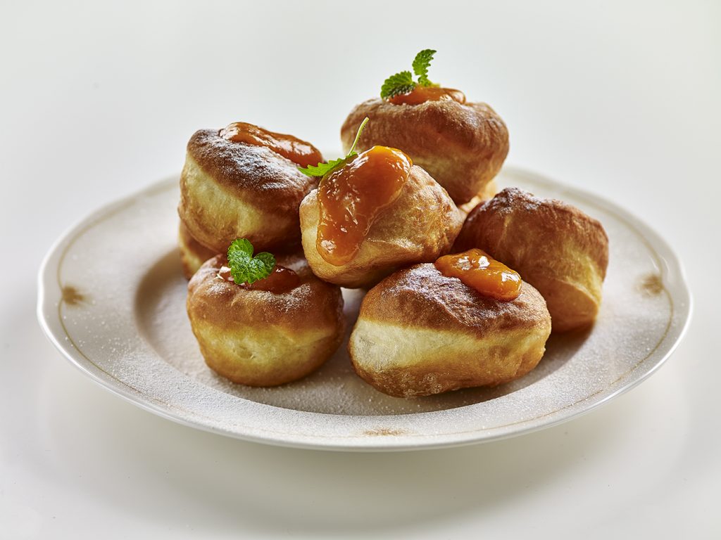 Az élesztőt egy teáskanál cukorral elkeverjük, majd hozzáadunk 0,25 dl langyos tejet, és kevés lisztet szórunk rá. Langyos helyen felfuttatjuk. A maradék lisztet, cukrot, csipet sót, 1,5 db tojássárgáját, reszelt citromhéjat beletesszük egy nagyobb tálba. Ha felfutott az élesztő, azt is beleöntjük a tálba, és a maradék langyos tej hozzáadásával tésztát készítünk. A tésztát alaposan kidagasztjuk, hogy jó levegős legyen. Ha kellően szuszogós a tészta, megszórjuk a tetejét liszttel, tiszta ronggyal letakarjuk, és meleg helyen duplájára kelesztjük. A megkelt tésztát lisztezett deszkára borítjuk, átdolgozzuk, és 1 cm vastagra nyújtjuk. Kiszaggatjuk, letakarva 20 percig kelesztjük. A tészták közepét újjal benyomjuk, és nem túlságosan forró olajba tesszük. Fedő alatt sütjük először, majd fordítjuk, de akkor már nem takarjuk le. Amikor szép aranysárga, kivesszük az olajból, szalvétán leszárítjuk.